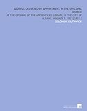 Address, Delivered by Appointment, in the Episcopal Church: At the Opening of the Apprentices' Library, in the City of Albany, January 1, 1821 [1821 ] By Solomon Southwick Zip